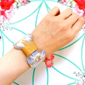 スナップを留めると、リボンのような形になるブレスです。