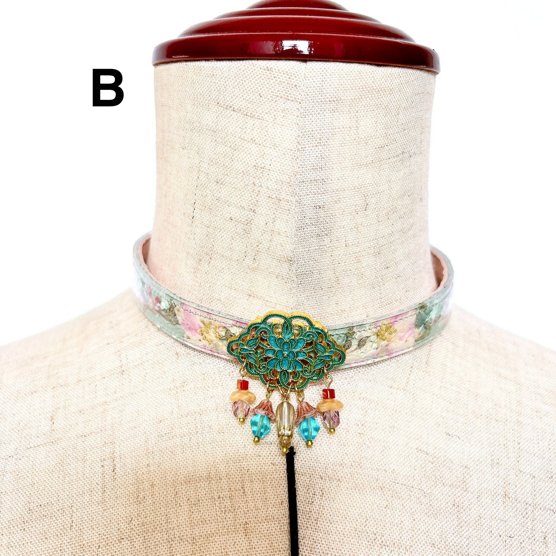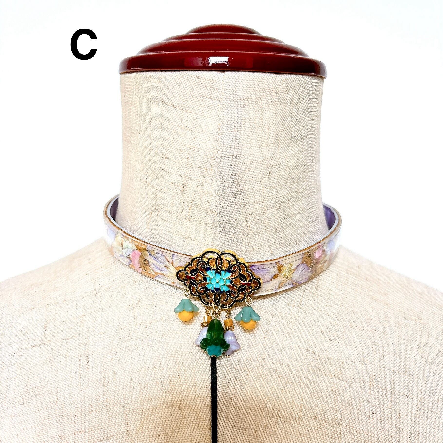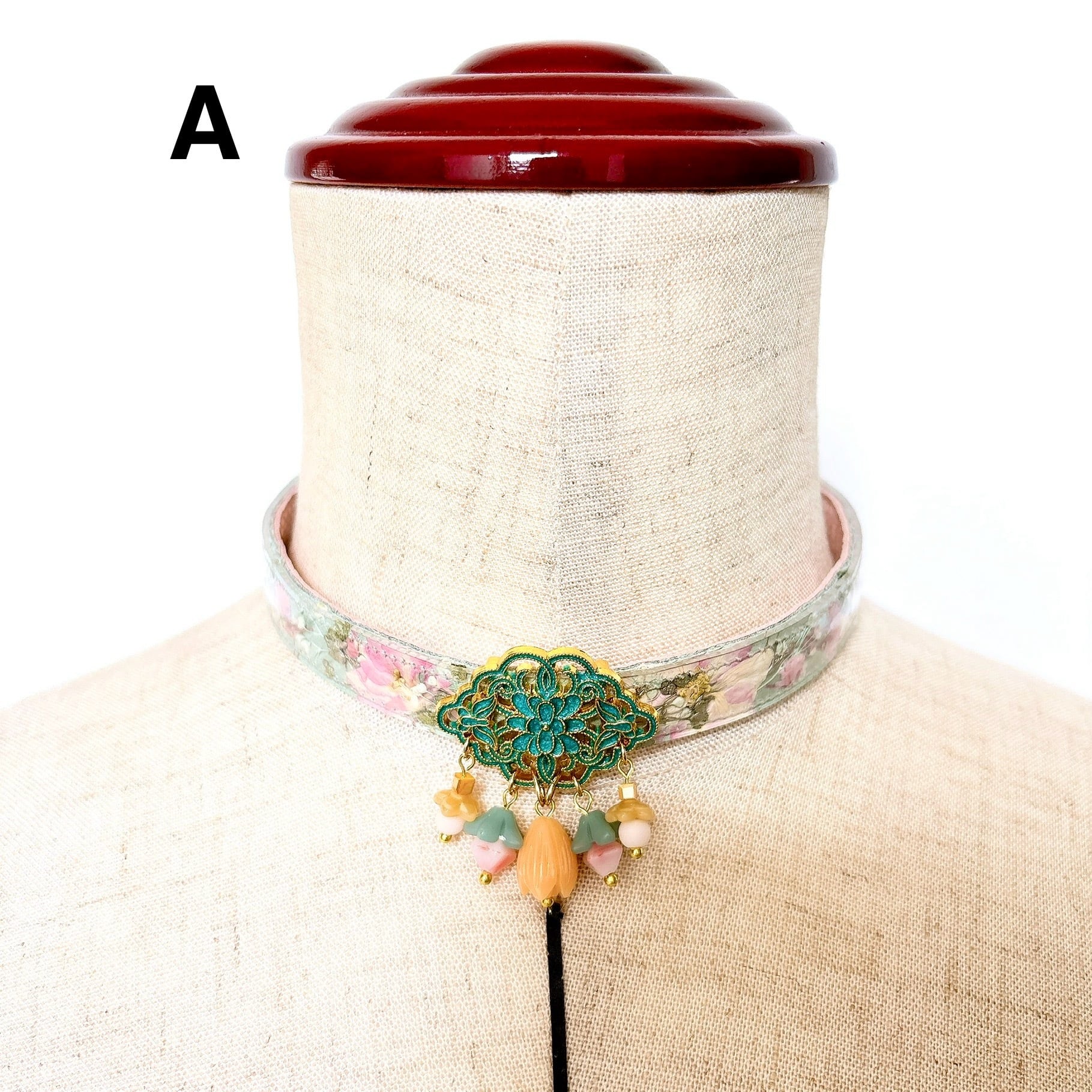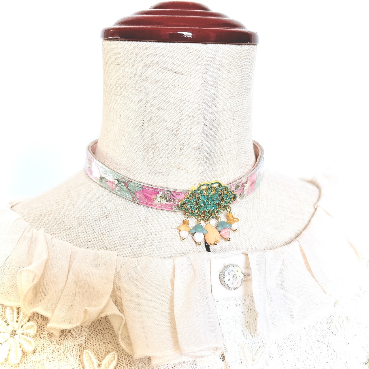 人気のバックルチョーカーをオリエンタルバージョンにして、より華やかなデザインにしました。カラフルな色味が夏の装いを彩ってくれます。
