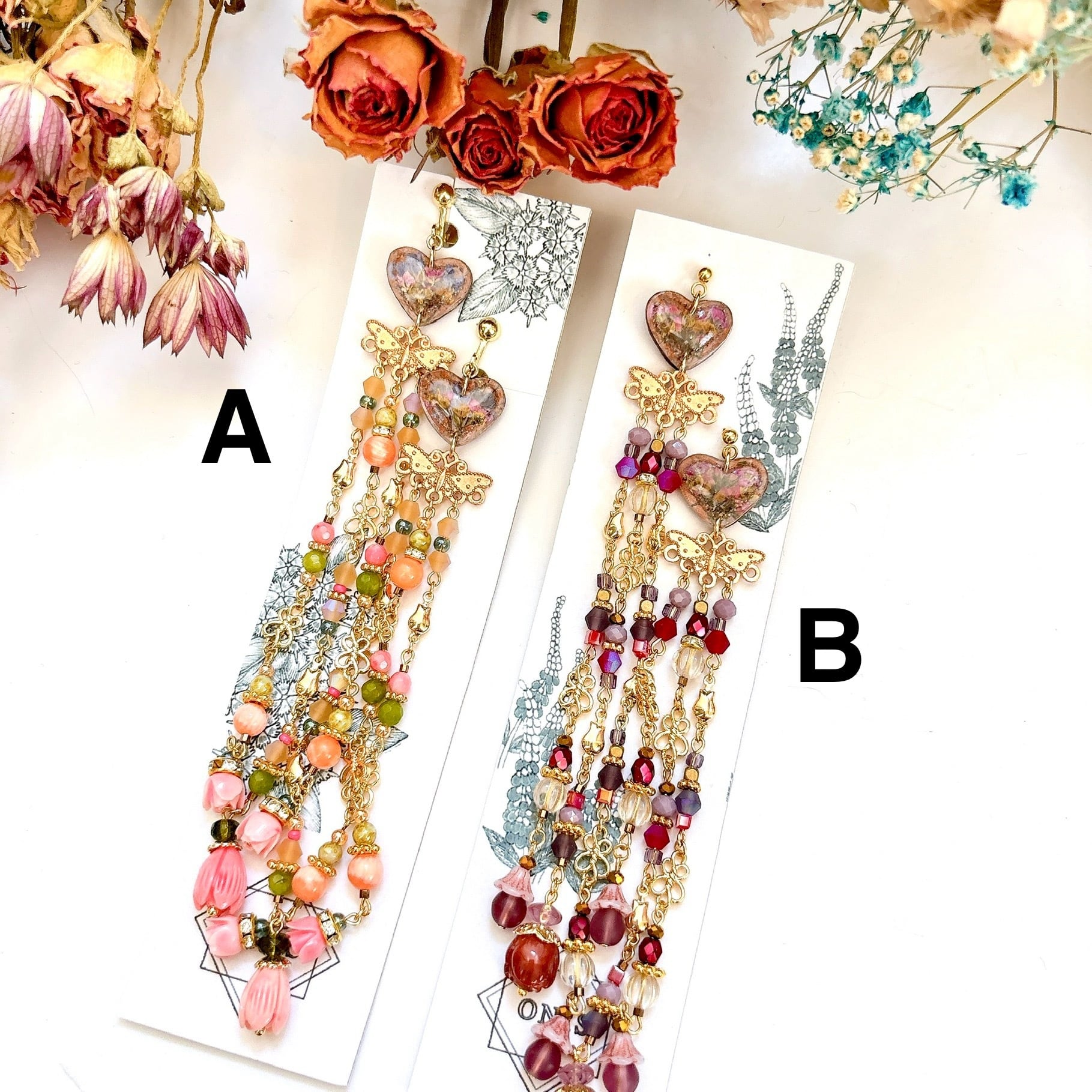 ONIS では本物の花を使ってアイテムを作っております。レジンなどは使わず、レザーやクリアシートで