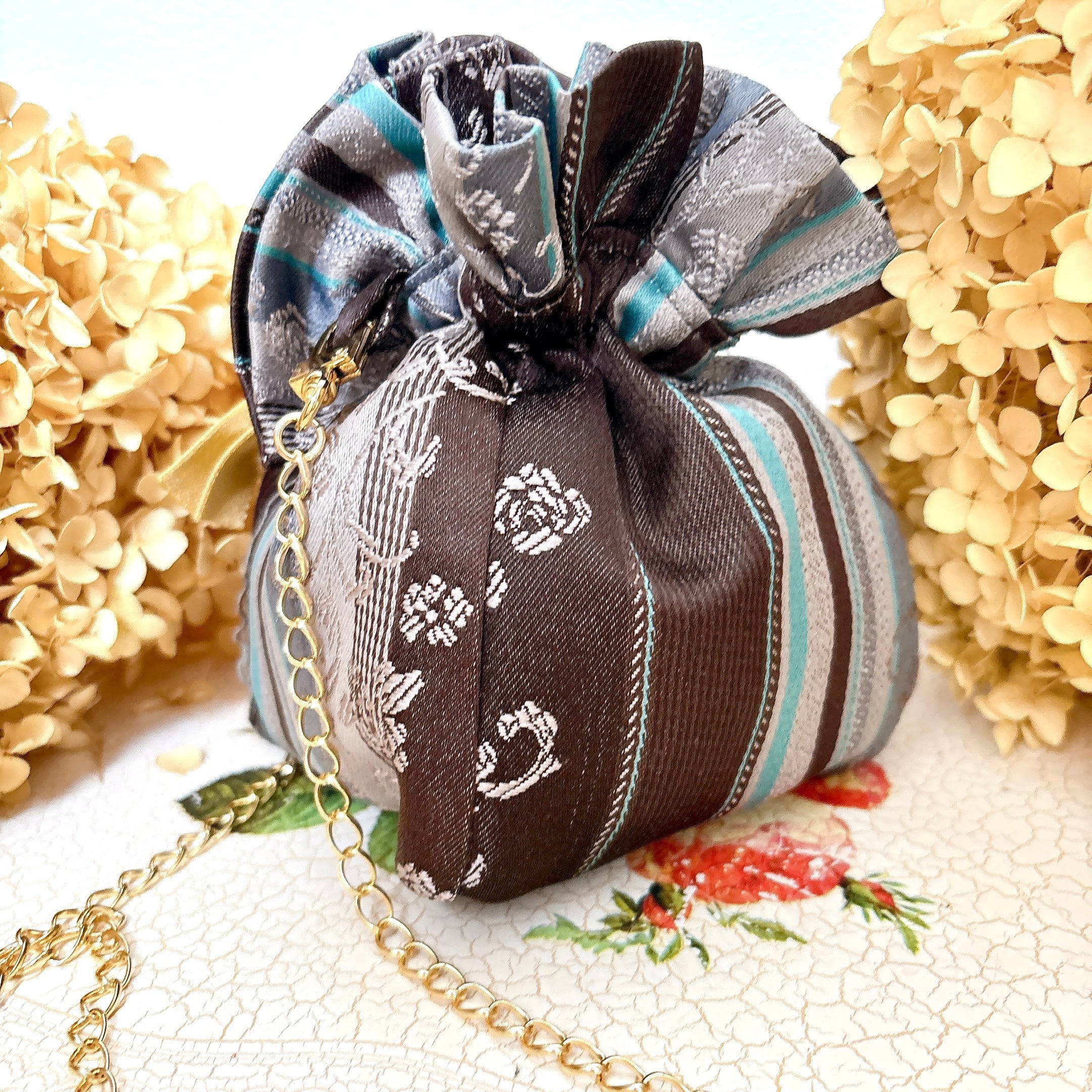 ミニョネット(お人形)の世界から飛び出てきたような、インポートのジャガード生地を使ったアンティーク調の可愛らしいポシェットです。